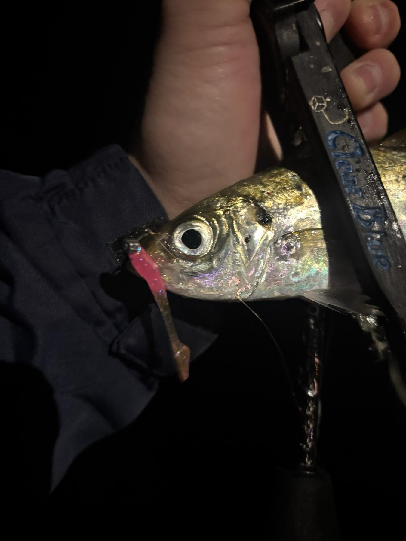 渋い時にシャッドテール?と思いますがシャッディーをかっちゃ付すると...ブルブル動いたあとにピタっと止まりますゆっくりフォールするので反応を探す時に使います。