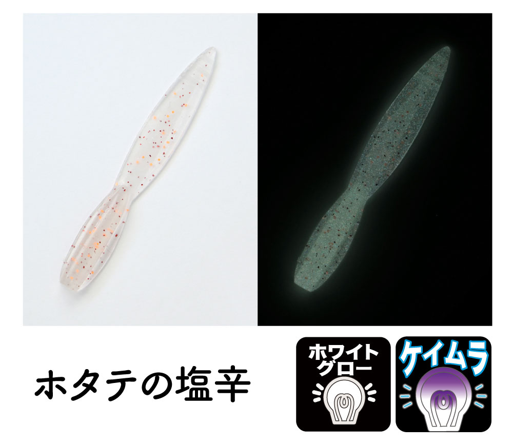 ボディを短くする事でより吸込み易くなり、横幅もスリム化してヒレを大きくしたので更にフォールが遅くなり、鯵に発見して貰い易くなりました!